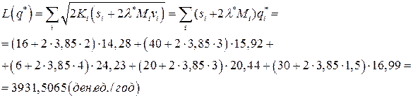 (ден. ед. в год). При ограничениях среднегодовые издержки равны: