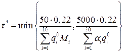 , то оба ограничения существенны. Оптимальный период повторения совместного заказа десяти видов пар обуви определим по формуле (9.19):