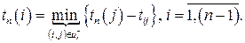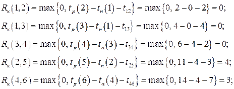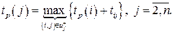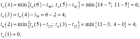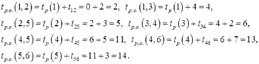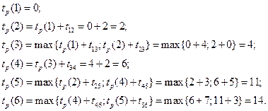 Чтобы найти ранний срок совершения события j, нужно знать критический путь ориентированного подграфа, состоящего из множества путей, предшествующих данному событию j. Ранний срок исходного события равен нулю: tp(1)=0.