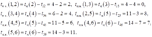 Все пути, отличные по продолжительности от критического, располагают резервами времени. Разность между длиной критического пути и любого некритического называется полным резервом времени данного некритического пути и обозначается