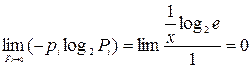 2. Энтропия – величина ограниченная. Для слагаемых в диапазоне изменения вероятности от 0 до 1 ограниченность энтропии очевидна, но предел произведения отрицательной вероятности на логарифм этой вероятности не пределен. Если найти предел при вероятности, стремящейся к нулю, то, используя правило Лопиталя, мы в конечном итоге получим, что предел: