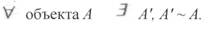 Теперь переформулируем ее: "Для каждого объекта А существует канонический объект А ', такой что А ' эквивалентен А ". На первый взгляд, фраза удлинилась в два раза, но теперь она почти вся состоит из слов, для которых у нас имеются введенные в предыдущих уроках сокращения. В результате ее можно записать: