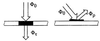 - соответственно световой поток, прошедший материал, и световой поток, отраженный от материала.