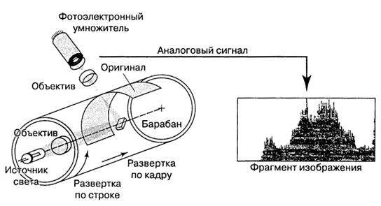 Фотоэлектронные умножители в качестве светочувствительных приборов используются в барабанных сканерах (рис. 4.5).