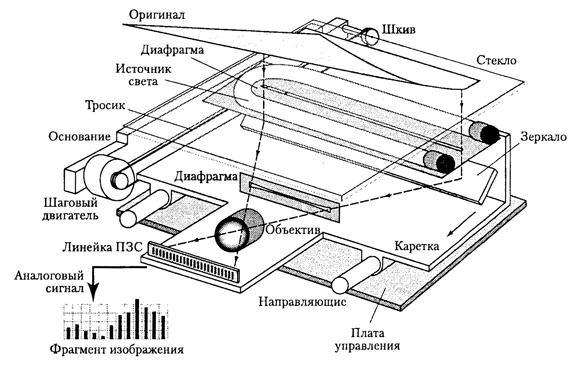 Рис. 4.4. Пример использования линейного ПЗС в планшетном сканере