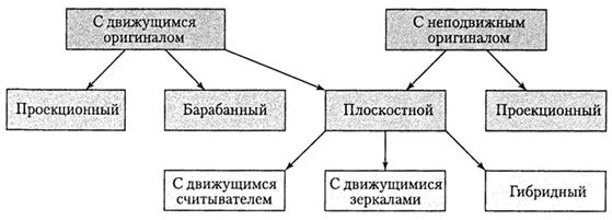 Устройство сканера во многом определяётся применяемым фотоприемником. Профессиональные сканеры для использования в системах до-печатной подготовки изданий можно классифицировать по следующим признакам (рис. 4.5):