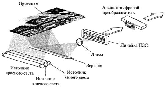 Рис. 7.2. Однопроходный сканер с тремя источниками света.