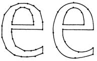 Третий метод основан на формировании знаков с помощью микрорастра (субрастра). Световое пятно устанавливается в позицию, где должен быть воспроизведен шрифтовой знак, а сам знак записывается вертикальными точечно-растровыми линиями, высота которых ограничена верхним контуром знака и некоторой начальной (базовой) линией микрорастра.
