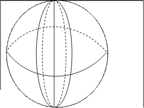 3. Поверхность эллипсоида вращения получается при вращении эллипса вокруг малой (полярной) полуоси. Эллипсоид характеризуется тремя величинами: а – большая полуось, в – малая полуось,