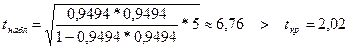 где n – число наблюдений. Полученное значение сравнивается с табличным критическим значением