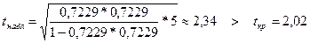 Для оценки значимости выборочного коэффициента парной корреляции применяется t -критерий Стьюдента. При этом фактическое значение этого критерия определяется по формуле: