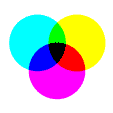 Эту модель используют для подготовки не экранных, а печатных изображений. Они отличаются тем, что их видят не в проходящем, а в отраженном свете. Чем больше краски положено на бумагу, тем больше света она поглощает и меньше отражает. Совмещение трех основных красок поглощает почти весь падающий свет, и со стороны изображение выглядит почти черным, рис. 4. В отличие от модели RGB увеличение количества краски приводит не к увеличению визуальной яркости, а, наоборот, к ее уменьшению. Поэтому для подготовки печатных изображений используется не аддитивная (суммирующая) модель, а субтрактивная (вычитающая). Цветовыми компонентами этой модели являются не основные цвета, а те, которые получаются в результате вычитания основных цветов из белого: