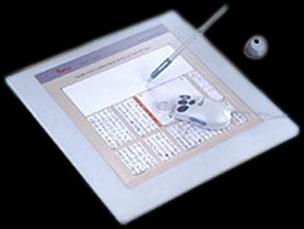 | Одной из разновидностей дигитайзера является графический или рисовальный планшет. Он представляет собой панель, под которой расположена электромагнитная решетка. Если провести по его поверхности специальным пером, то на экране монитора появится штрих. В планшете реализован принцип абсолютного позиционирования: изображение, нарисованное в левом нижнем угла планшета, появится в левом нижнем углу экрана монитора. Обычно рисовальные планшеты имеют размеры коврика для мыши, но рабочая поверхность несколько меньше. |