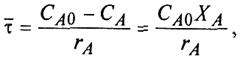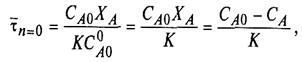 где t - среднее время, в течение которого обновляется содержимое проточного реактора, причем = Uр:W (Up~ объем реакционной зоны, м3); W'- объемная скорость, м3/м3 • ч