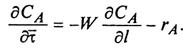 •Уравнение материального баланса в дифференциальной форме для РИВ при нестационарном режиме имеет вид: