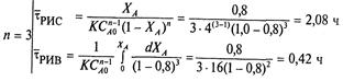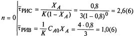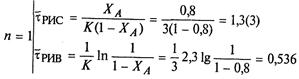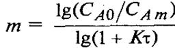 Из уравнения, если заданы изменения концентрации или степени превращения, можно найти число реакторов в каскаде: