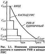 •Каскад при N ~ 1 представляет собой единичный реактор идеального смешения, а при N = и бесконечно малых объемах секций dV - реактор идеального вытеснения.