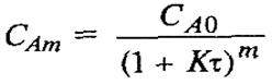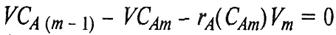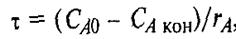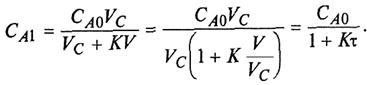 Где Vm– реакционный объем m-го реактора, V – объемный расход реакционной смеси через m – ный реактор, CA- концентрация реагента А в реакционной смеси