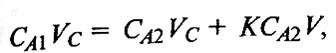 где V с- расход смеси; V- объем реактора; СAm- концентрация реагента в m-м реакторе; К- константа скорости превращения.