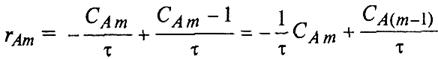 -это уравнение прямой, описывающей зависимость концентрации продукта на выходе из реактора от скорости реакции в нем. При равенстве объемов всех реакторов величина СА(т ~ i)/ t постоянная, и описываемая прямая имеет тангенс угла наклона (-1/t).
