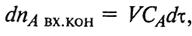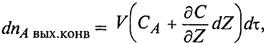 •Реагент А поступает в dV за d t путем конвективного и диффузионного переноса: