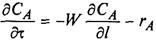 •При составлении уравнения материального баланса принимают модель идеального вытеснения по веществу А,