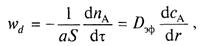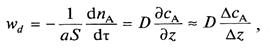 где DСА — изменение концентрации на расстоянии DZ =d — толщина слоя, через который проходит диффузионный поток.