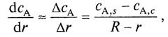 Концентрация газообразного реагента А у поверхности твердой частицы ниже, чем в ядре газового потока