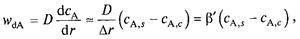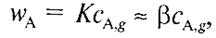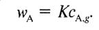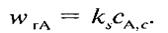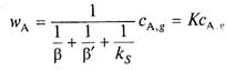 Таким образом, скорость гетерогенного процесса представлена в виде произведения константы скорости гетерогенного процесса К на концентрацию реагента А в газовой фазе Саg.