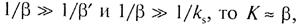 Когда сопротивление одной из стадий существенно превышает сопротивление двух других стадий, т, е. одна стадия затруднена по сравнению с другими, константа скорости гетерогенного процесса с достаточно хорошим приближением будет равна коэффициенту интенсивности данной стадии. Например;