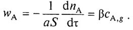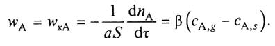 Основное сопротивление сосредоточено на стадии проникновения газообразного реагента А через пограничную газовую пленку, обедненную этим реагентом. Скорость гетерогенного процесса, равная в этом случае скорости конвективной диффузии, определяется уравнением: