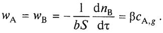 Скорость гетерогенной реакции можно выразить через изменение во времени количеств газообразного реагента А и твердого реагента В: