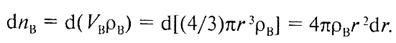 Количество реагента В в твердой частице можно представить как произведение объема ядра Vв на молярно-объемную плотность dnB
