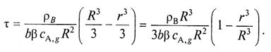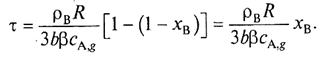 При XB= 1 (весь реагент В прореагировал) уравнение (32) позволит определить время полного превращения твердой частицы Вn, если гетерогенный процесс лимитируется внешней диффузией: