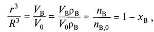 Отношение г3/R3 можно заменить на отношение объема к объему всей твердой частицы (VB/V0) и, умножив числитель и знаменатель на rВ, получим: