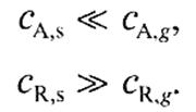 При этом концентрация реагентов сД5 и продуктов сКк у внешней поверхности катализатора резко отличается от концентраций
