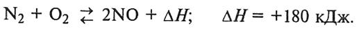 •Химическое взаимодействие азота и кислорода - это двусторонняя эндотермическая реакция, протекающая без изменения объема: