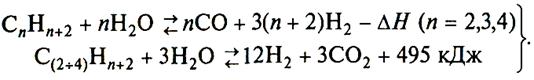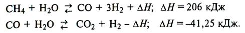 •суммарное уравнение химического взаимодействия при обработке природного газа водяным паром:
