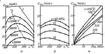 •Содержание аммиака в оборотной азотоводородной смеси при давлении 30 МПа и температуре -5 °С составляет -2,5%.
