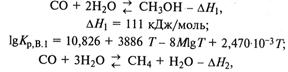 Из протекающих семи химических превращений - одно целевое и шесть побочных, часть из них может быть использована Для получения сопутствующих продуктов, прежде всего метана [уравнения (1) и (2)]:
