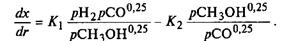 Для синтеза используют смесь с соотношением СО:Н2 1,0:1,5 или 1,0:2,5, очищенную от пентакарбонила железа в фильтре-адсорбере, заполненном активным углем. Скорость реакции определяется адсорбцией водорода на втором этапе каталитического процесса и может быть вычислена по уравнению Темкина:
