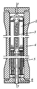 1 - вход основного газа; 2 - катализатор-ная коробка; 3 - электроподогреватель; 4 - корпус колонны; 5 -теплообменник; 6 - выход газа; 7 - вход байпасного газа