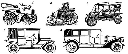 В качестве примера на рис.1.3 представлена эволюция дизайна легкового автомобиля в период от его создания в 1886 до 2004 г.[1].