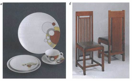 Рис.2.2. Ф.Л. Райт. Сервиз для гостиницы в Токио. 1922 (а); стулья 1908, 1902 (б)