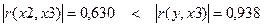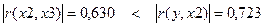 Все три условия выполняются, значит мультиколлениарность между факторными переменными x2 и x3 отсутствует, и они могут использоваться в модели одновременно.