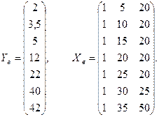 Для вычисления параметров модели по данным наблюдений выпишем вектор Yв и матрицу Xв: