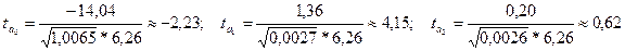Значимость параметров модели множественной регрессии aj проверяется с помощью t -критерия Стьюдента аналогично тому, как мы проверяли значимость коэффициентов модели парной регрессии. Для каждого параметра уравнения вычисляется t -статистика: