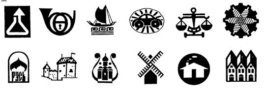 Рис. 3.10. Товарные знаки на основе изображений объектов техники, архитектуры и других сюжетов
