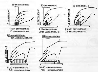 Рис. 5.7. Оптимальные размеры поворотных ручек и значений прилагаемых усилий