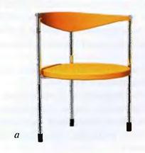 Они выполнены во всех случаях из тонкой металлической трубы, но ее свойства и несущая способность в каждом случае выражены различно. В первом случае (рис.7.2, а) четыре поставленные строго вертикально стойки из тонкой трубки создают ощущение легкости конструкции опорной части стула. В то же время она прочна, проста и надежно устойчива. Во втором варианте (рис.7.2, б) три опорные стойки из тонкой трубы слегка раздвинуты и изогнуты, за счет чего создается ощущение некоторой подвижности, рессорности. И, наконец, в третьем варианте гибкие свойства тонкой металлической трубы выражены еще более решительно (рис.7.2, в). Конструктивная основа консольного типа выполнена из непрерывного стержня трубчатого сечения. Каждый участок изогнутой трубы является элементом несущей конструкции стула: спинки, подлокотников, сиденья и т.д. Рессорные свойства этой системы проявлены активно в конструкции стула и сознательно заложены в тектонический смысл получаемой формы.